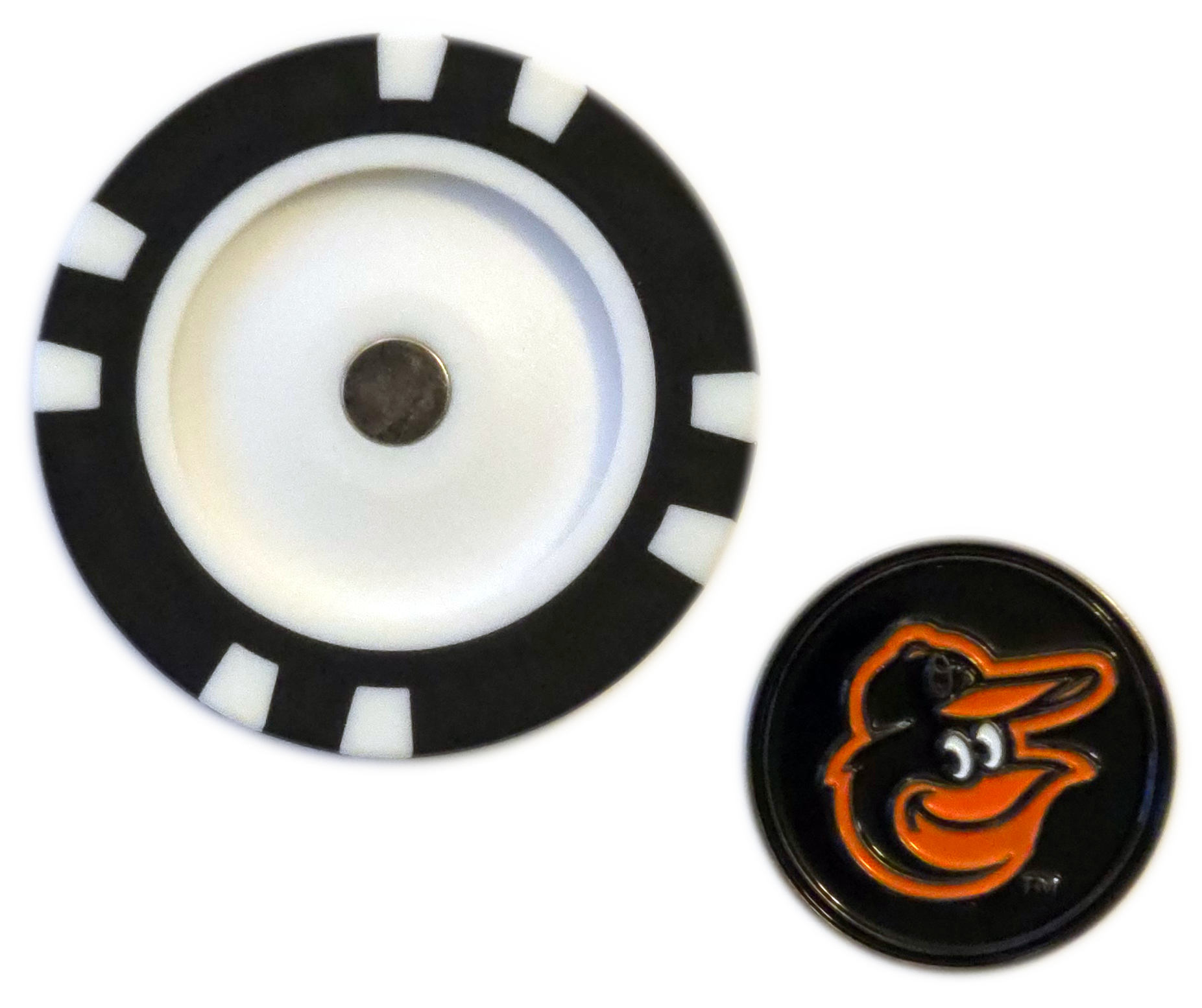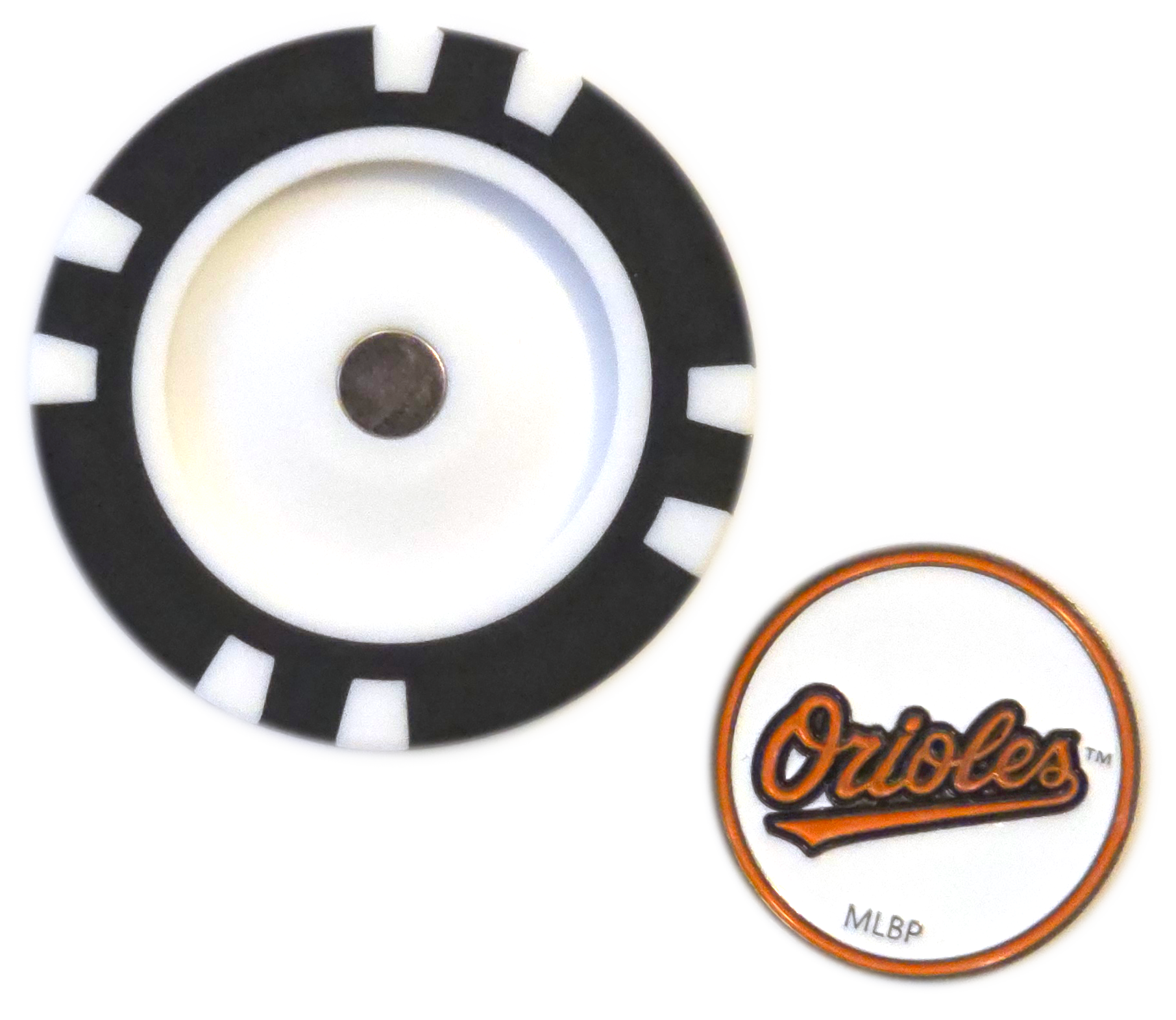 - Double-Sided Metal Marker: Two Orioles designs, letting you switch it up on the course.