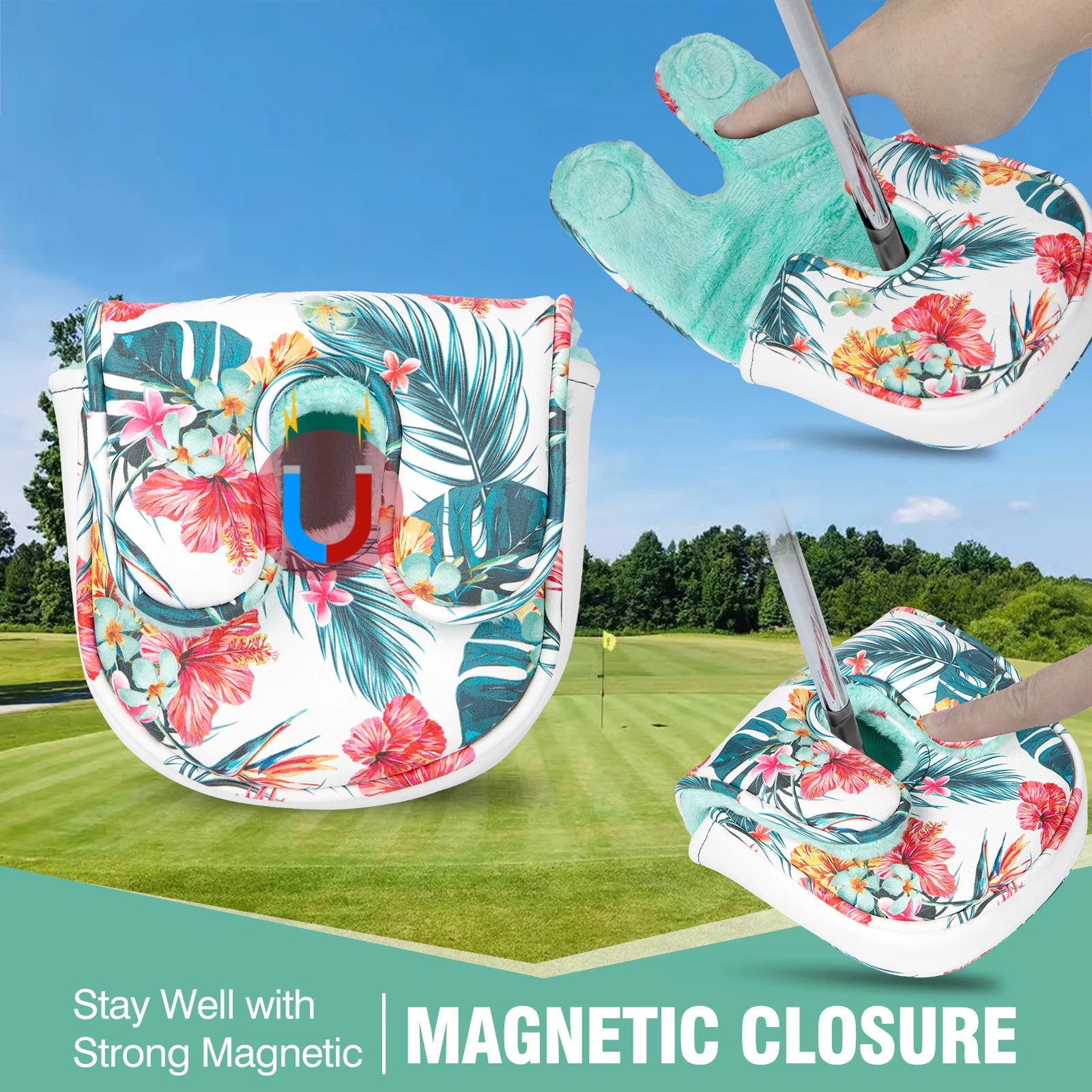 This vibrant, floral-patterned headcover is designed specifically for center shaft DF3 mallet putters. It blends 90s country club charm with laid-back vacation vibes. Because your putter deserves more than just “functional”—it deserves flair.